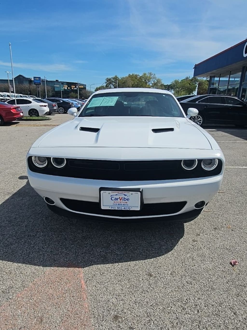 The Challenger SXT's striking exterior is enhanced by the Blacktop Package, which includes a gloss black grille, black fuel filler door, and unique 20-inch black wheels. Step inside and you'll be surrounded by premium features like the Uconnect 4C infotainment system, heated steering wheel, and leather-wrapped shift knob.